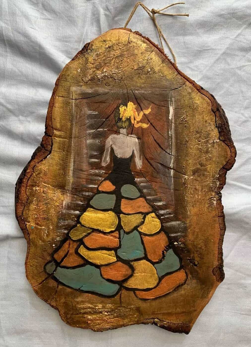 Διακοσμητικό από κορμό ζωγραφισμένο