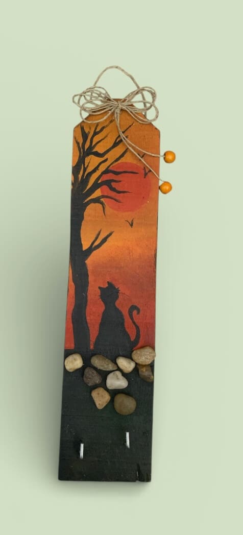 Κλειδοθήκη ζωγραφισμένη SUNSET CAT